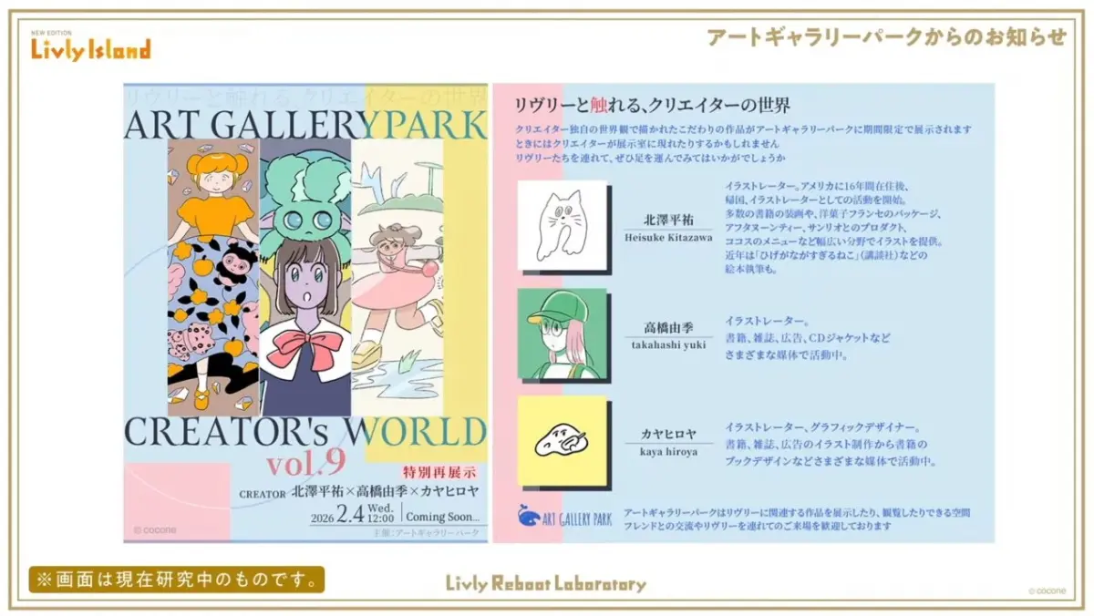 | 2/4(水) | アートギャラリーパーク「クリエイターズワールドVol.9」特別再展示 |