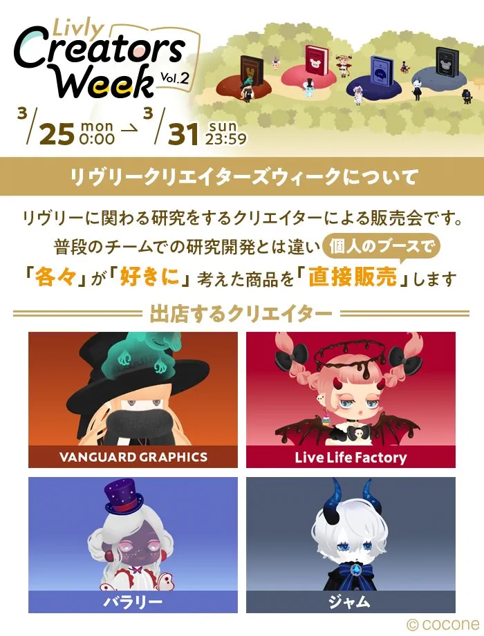 第2回リヴクリ_LiveLifeFactoryのアイテム一覧、販売期間(開催期間)、開催場所をまとめて掲載しています。 第2回リヴクリ_LiveLifeFactoryショップ クリエイターLive …