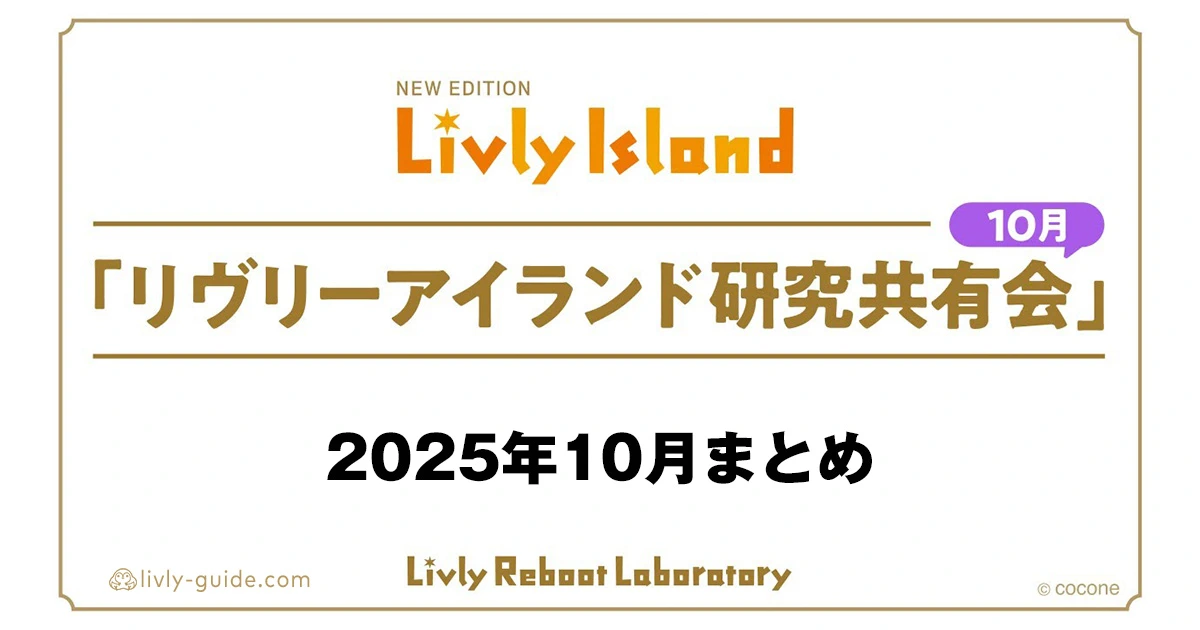 「リヴリーアイランド」「LIVING with LIVLIES」攻略情報、お役立ち情報、アップデート、今後の予定など最新情報をお届けします!